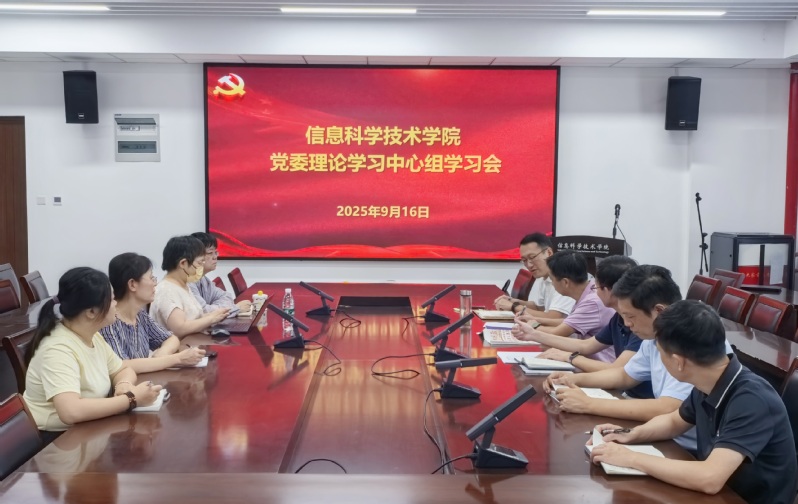 2025年9月16日上午,信息科学技术学院党委理论学习中心组在34-1215会议室举行本年度第十三次集中学习会,围绕深入学习领会习近平总书记关于教育的重要论述,大力弘扬教育家精神,加强新时代高素质专业化教师队伍建设的主题进行专题学习和研讨。学院党委理论学习中心组成员参加学习。