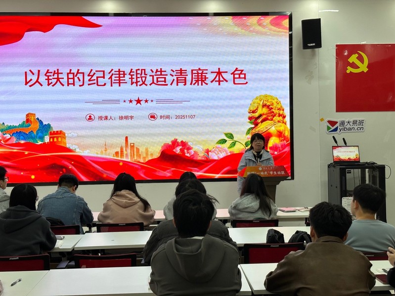 11月7日下午,学院学工办主任徐明宇以《以铁的纪律锻造清廉本色》为题开展党纪党规教育。她强调,全体学员要始终把政治纪律放在首位,知敬畏、存戒惧、守底线,做到清清白白做人、干干净净做事。学员们纷纷表示,将以更高标准严格要求自己,把纪律意识内化于心、外化于行,争做政治坚定、作风优良的新时代青年。