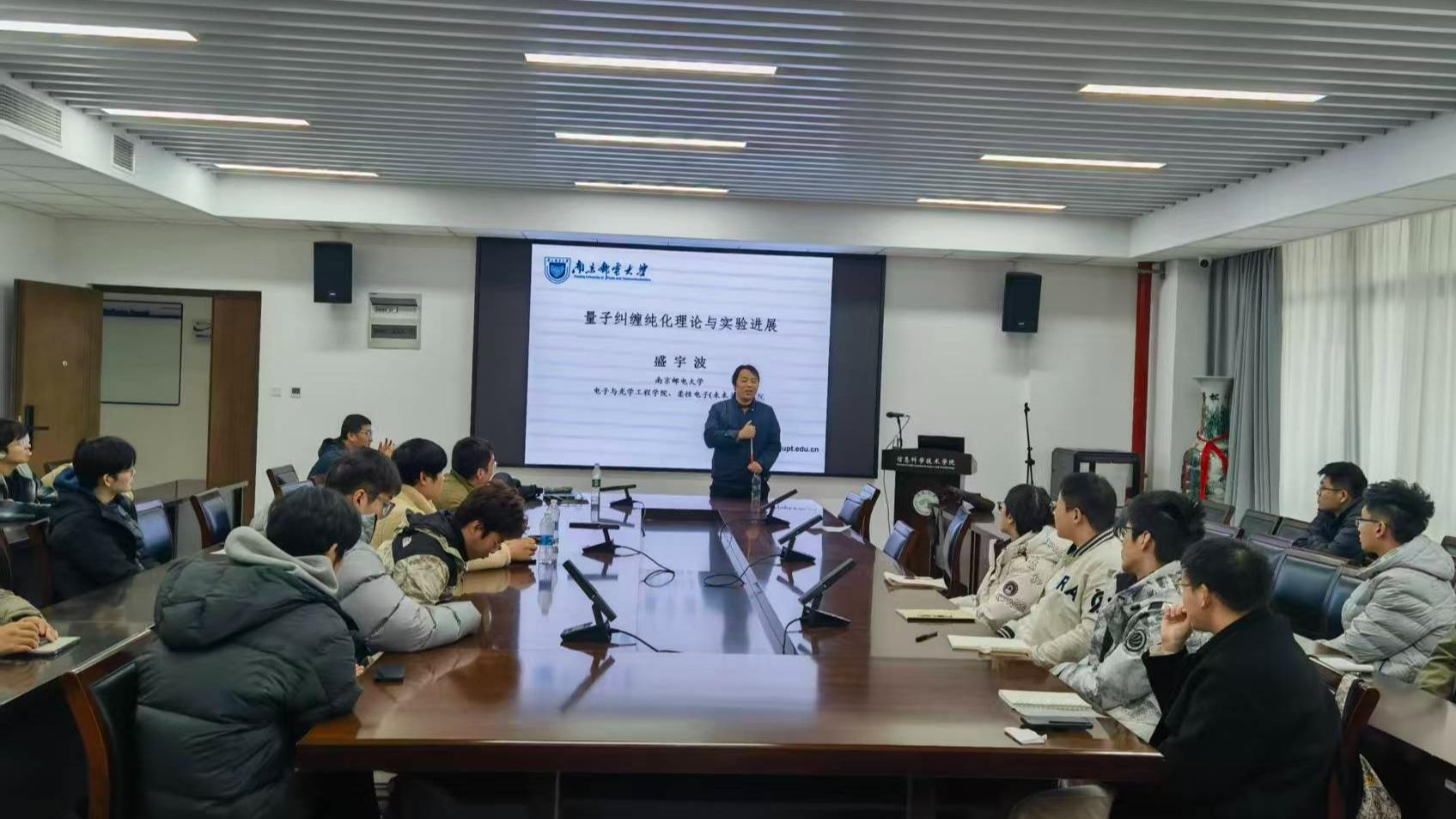 12月19日下午,应学院邀请,南京邮电大学教授、博士生导师盛宇波为我院师生作题为《量子纠缠纯化理论与实验进展》的学术报告。学院相关老师及研究生代表参加报告会。报告会由严培舜老师主持。