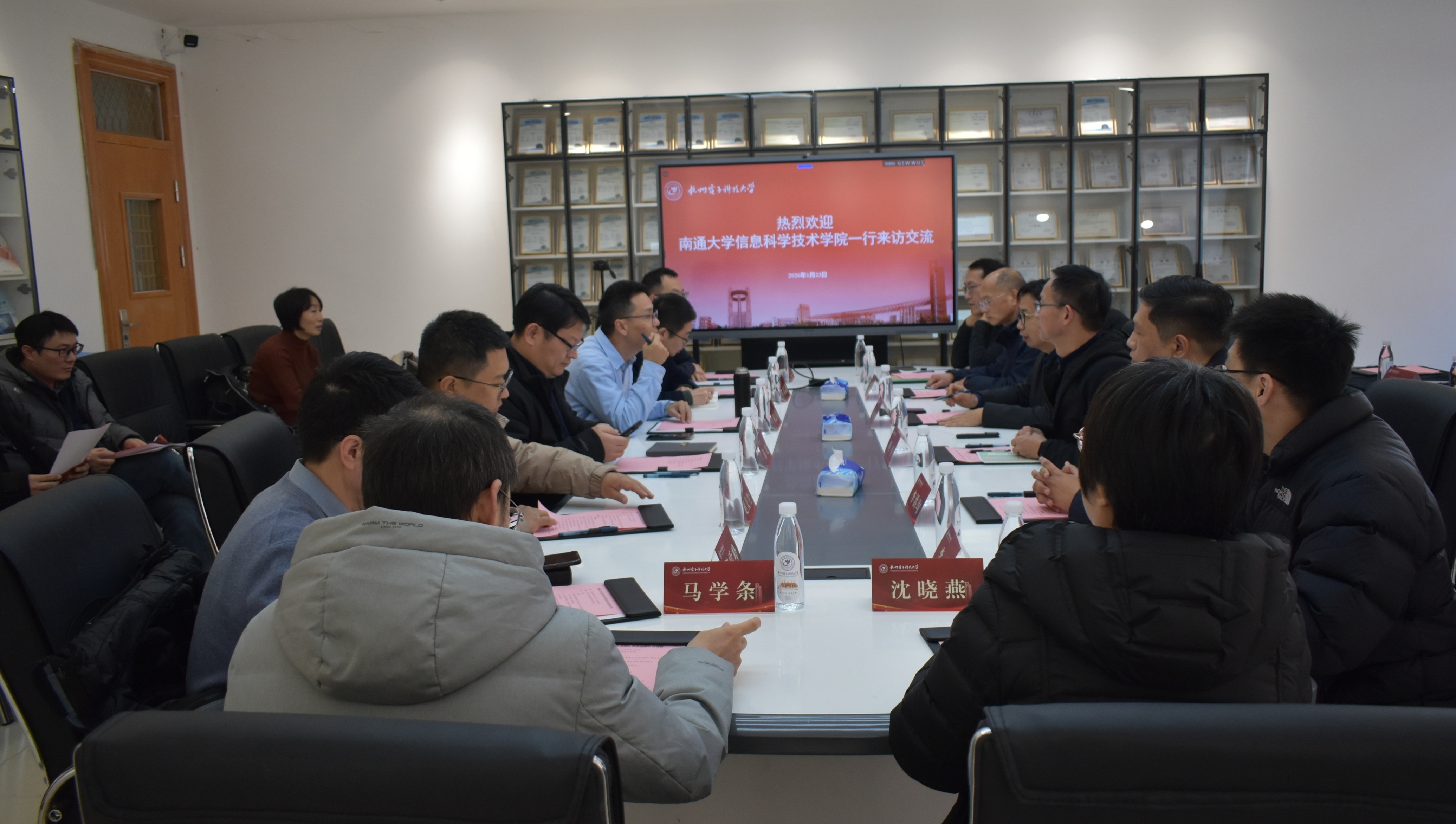 在杭州电子科技大学电子信息学院,何志伟院长介绍了学院在学科布局、人才队伍建设、科研平台建设和人才培养等方面的总体情况,分享了在博士点建设、科研团队组织运行、教学改革及以学科竞赛促进人才培养等方面的经验。陈龙书记带领大家参观了电类综合远程省级实验教学示范中心,介绍了以教育数字化和新型基础设施建设为牵引,探索“云端预约、远程实景操控”的实验教学新模式。随后,双方围绕党建引领学科发展、高水平科研团队建设、创新人才培养模式、产学研协同机制等议题进行了交流。双方希望以此次交流为起点,未来在科研项目联合攻关、学术资源共享、师生互访交流等方面建立常态化合作机制,共同服务国家电子信息产业发展战略。