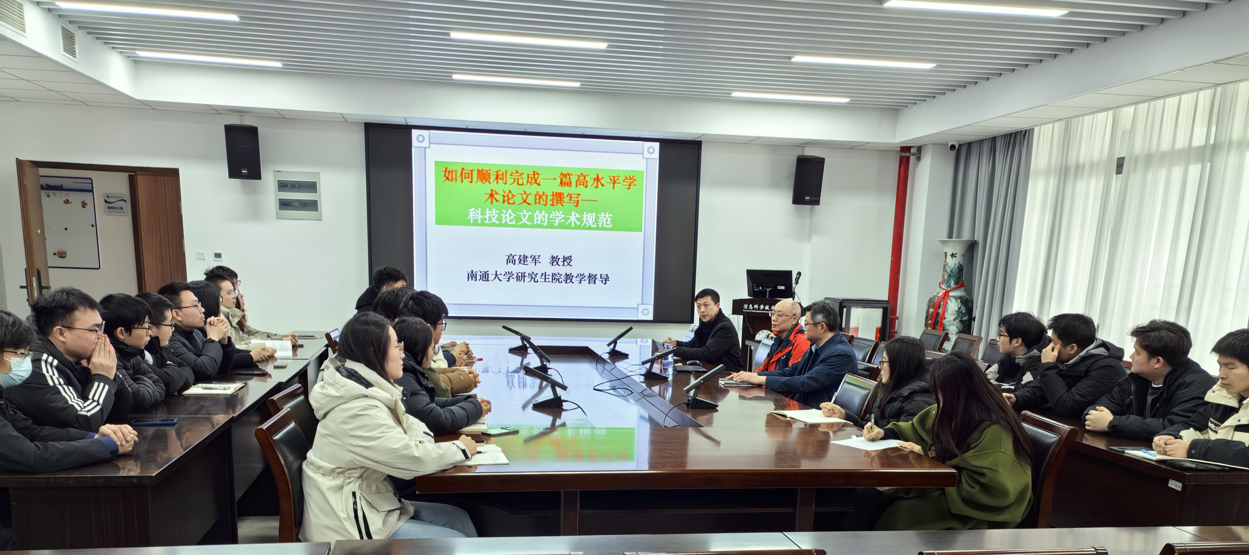高建军教授最后勉励同学们积极参与学术交流,精读高水平论文,在交流与积累中不断提升科研能力。整场讲座内容详实、案例丰富,语言深入浅出,现场气氛热烈。与会同学纷纷表示,讲座既有理论高度,又贴近写作实际,使大家对科研选题、论文撰写和学术规范有了更深刻的理解和更清晰的规划。